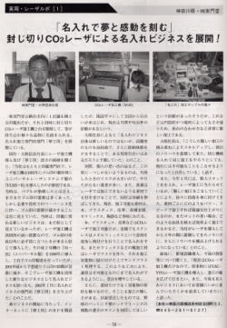 | オリジナルギフト横浜夢工房HOME>雑誌に掲載されました>レーザワールド&トレンド | |||||||||||||||||||||||||||||||||||||||||||||