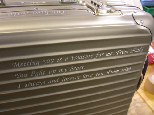 お客様のお持ち込みの品物に、企業様の販促品に、1個からでも加工致します。 最新鋭のレーザー光線で世界に1つだけのオンリーワン商品を作りませんか? お問合せ・お見積りは、お問合せフォームをご利用下さい。 |