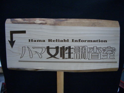 流木風看板 流木風の木の板に、お店のロゴや案内表示などを彫刻します。 旅館やコテージ・ペンションなどの案内看板として、お蕎麦屋さんや和食屋さんの お店の看板などとしてご利用いただけます。 ![]() *彫刻する木の板は、お客様がご用意ください。 彫刻文字に色入れも可能です(別途お見積りになります) ご用意いただく木の板の大きさは、30cm×60cmの大きさでお願いします。 それ以上の大きさの場合、お問合わせください。 ![]() ★街の文化財案内板 ★会社の案内板 |